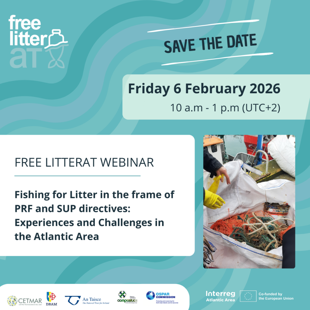 Dans le cadre du projet Free-LitterAT, plusieurs partenaires européens (France, Espagne, Portugal, Irlande) collaborent pour lutter contre les déchets marins. Un des axes consiste à réduire les déchets liés aux engins de pêche usagés et les déchets pêchés passivement, en encourageant leur collecte, leur traitement et leur recyclage.